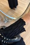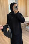 Zarif ve modern bir görünüm sunan merserize triko takım, dokulu yüzeyiyle hareketli bir siluet oluşturur; Siyah tonu ile dolabın her parçasına kolayca uyum sağlar.