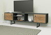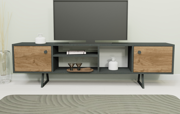 SALLY TV Standı mekânlarınıza asimetrik düzen getirecek. Minimal alanlarda işlevsel çözümler yaratmak için tasarlanmış bir TV ünitesi. İki adet kapaklı dolap kısmına ek olarak ortada yer alan raflı bölmeleri ile ihtiyacınız olan saklama ve sergileme alanlarını size sunacak bir tasarıma sahip. Yüksek ahşap ayakları sayesinde alt kısmı kolayca temizlenebilmektedir. Duvara monte edilen rafı farklı boyut ve ölçülerde kullanım alanları sunarak hem dekorasyonunuza katkı sağlıyor hem de işlevselliği ile göz dolduruyor.