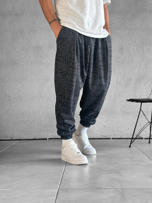 Lahit Desenli Lazer Kesim Pileli Yarım Şalvar