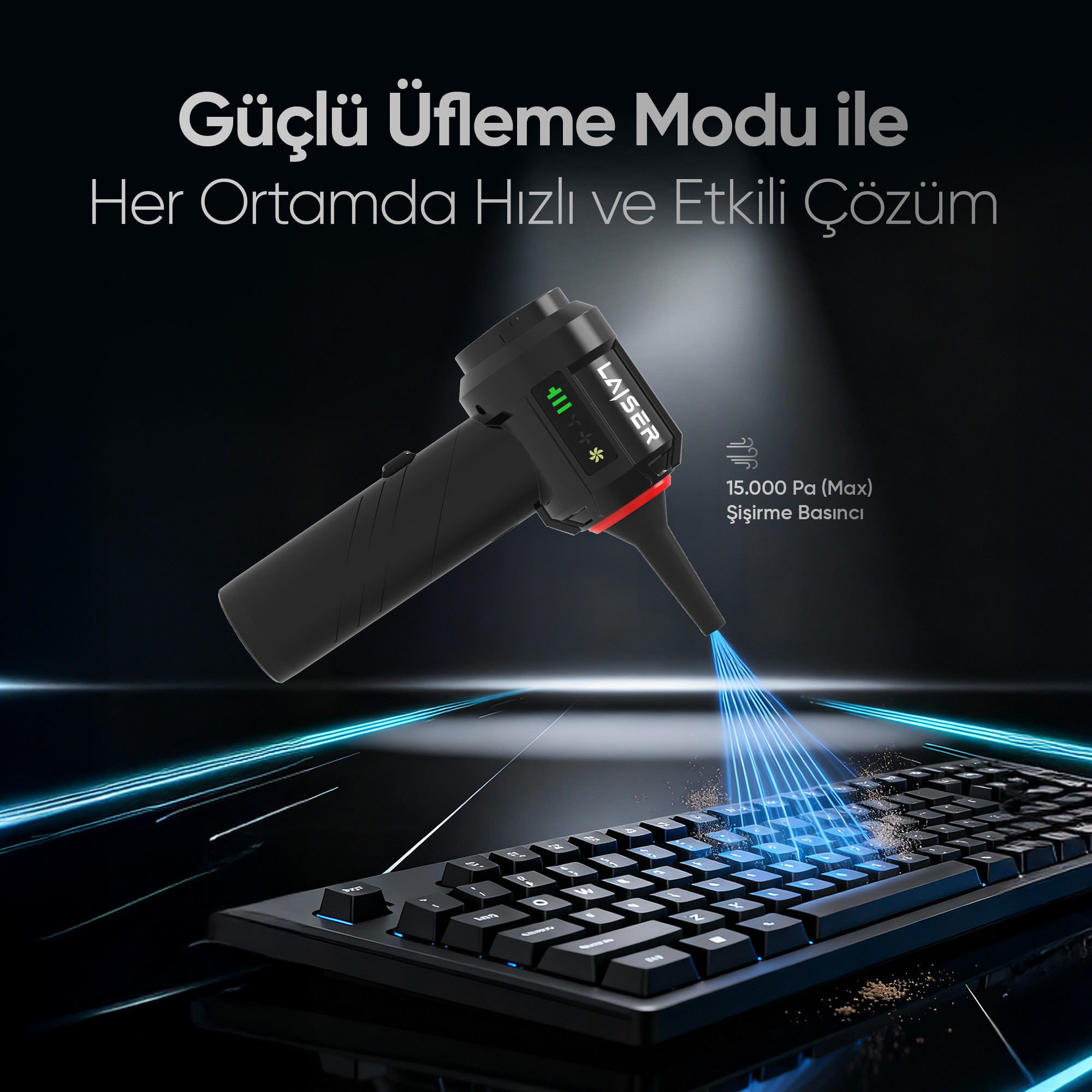 Laiser Mini, Katlanabilir LED Ekranlı 17.000 PA 3ın1 Çekme-Vakum-Üfleme Özellikli Şarjlı Araç Süpürgesi