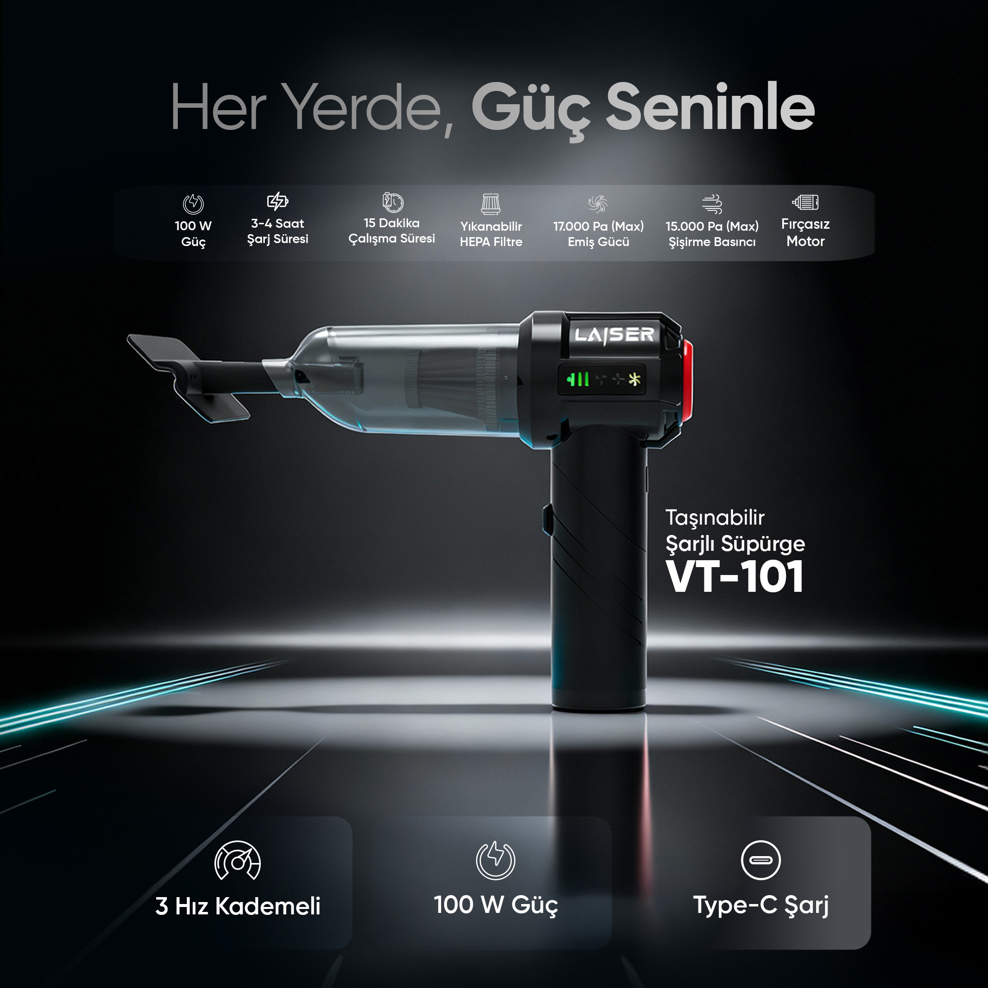 Aracınızın temizliği artık çok daha pratik! LAİSER Mini Şarjlı Süpürge, güçlü performansı ve kompakt tasarımı ile her an yanınızda. 3'ü 1 arada çekme, vakumlama ve üfleme özellikleriyle araç içindeki en inatçı kirlere bile çözüm sunar.