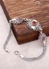 Kök Yakut Taşlı Gümüş Tasarım Telkari İşlemeli Bileklik