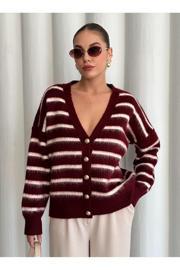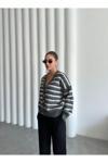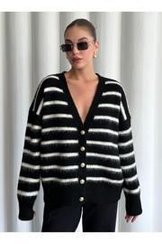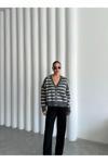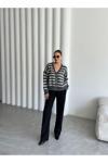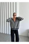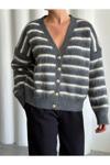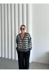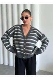 Laluvia Antrasit - Ekru Yumoş Enine Çizgili Hırka - 4584
