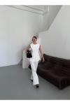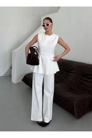 Laluvia Beyaz Leandra Tasarım Bluz Pantolon Takım - 9999