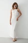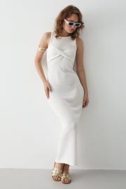 Laluvia Beyaz Önü Burgu Detaylı Elbise - 7251
