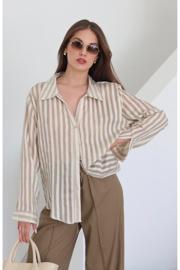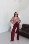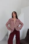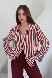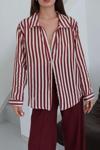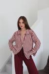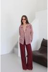 Laluvia Bordo Çizgili Gold Düğmeli Gömlek - 4966