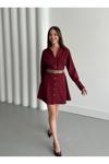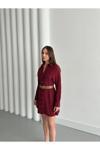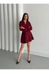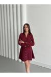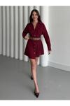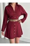 Laluvia Bordo Gold Düğmeli Kemerli Elbise - 250367