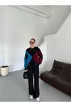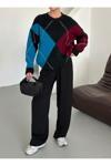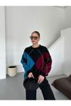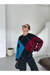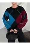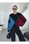 Laluvia Bordo - Mavi Baklava Desenli Kazak - 7184