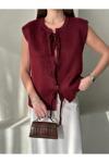Laluvia Bordo Önü Bağlamalı Yün Yelek - 4629