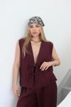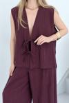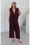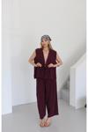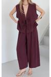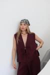 Laluvia Bordo Samantha Bağlamalı Yelek Pantolon Takım - 51155