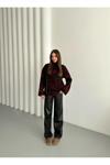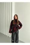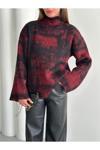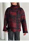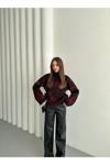 Laluvia Bordo - Siyah Dik Yaka Kırçıllı Kazak - 4677