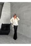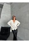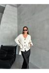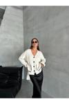 Laluvia Ekru Çoban Dikiş Torba Cepli Hırka-4371
