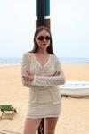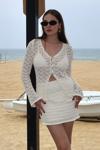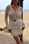 Laluvia Ekru İnci Düğmeli Hırka Etek Takım - 7221
