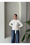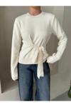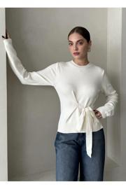 Laluvia Ekru Miusa Ön Bağlamalı Tasarım Kazak-4507