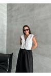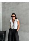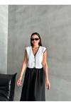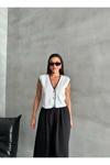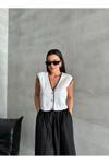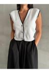 Laluvia Ekru Mona Kontrast Şeritli Kolsuz Yelek