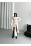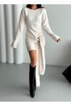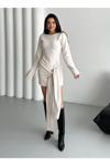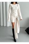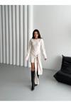 Laluvia Ekru Önü Bağlamalı Kısa Elbise - 7123