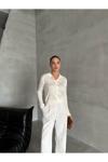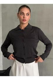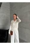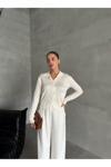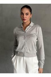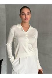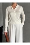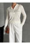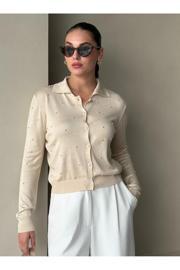 Laluvia Ekru Polo Yaka Mini Topçuklu Hırka -4560