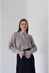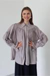 Laluvia Gri Büzgülü Tasarım Gömlek - 102116