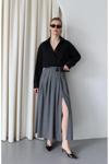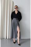 Laluvia Gri İki Kemerli Etek - 251016