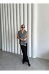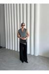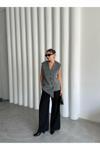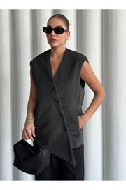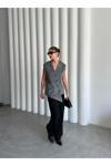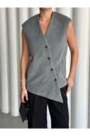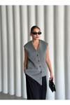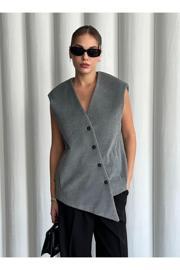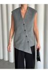 Laluvia Gri Venedik Çapraz Düğmeli Yelek-509063