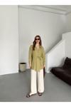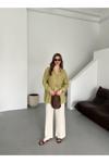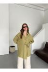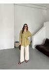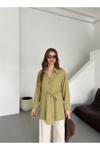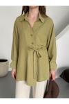 Laluvia Haki %100 Pamuk Çapraz Düğmeli Beli Kemerli Gömlek - 5258