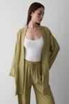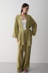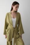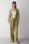 Laluvia Haki %100 Pamuk Cep Detaylı Kuşaklı Kimono Takım - 8491