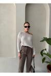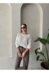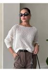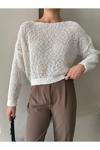 Laluvia Krem Spider Triko Rahat Kesim Kazak-4412
