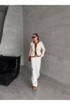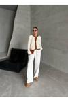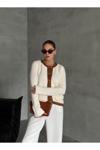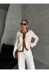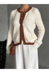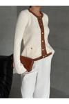 Laluvia Krem Süet Biyeli Gold Düğmeli Hırka - 241064