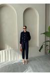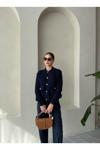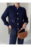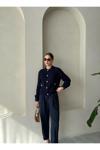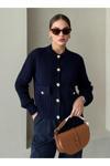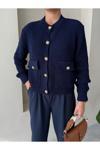 Laluvia Lacivert Belle Gül Düğmeli Hırka-4522
