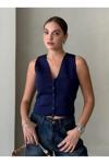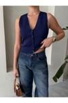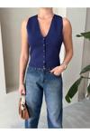 Laluvia Lacivert Elenor Çıtçıt Düğmeli Triko Yelek