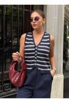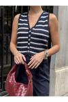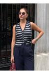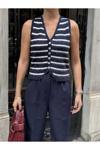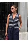 Laluvia Lacivert-Krem Sedef Düğmeli İki Renkli Yelek