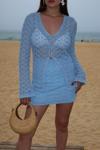 Laluvia Mavi İnci Düğmeli Hırka Etek Takım - 7221