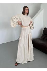 Laluvia Natural %100 Pamul Yan Yırtmaç Detaylı Etek Bluz Takım - 251009