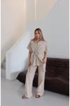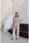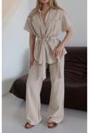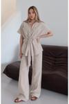 Laluvia Natural Düğmeli Kuşaklı Bluz Pantolon Takım - 7207