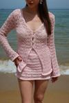 Laluvia Pembe İnci Düğmeli Hırka Etek Takım - 7221