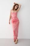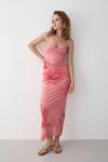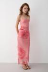 Laluvia Pembe Yan Drapeli Çiçek Desenli Elbise