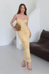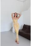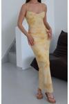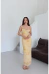 Laluvia Sarı Yan Drapeli Çiçek Desenli Elbise