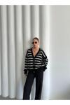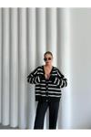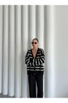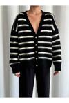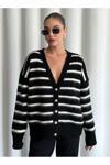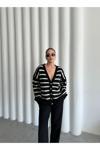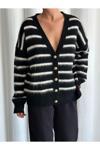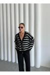 Laluvia Siyah - Ekru Yumoş Enine Çizgili Hırka - 4584