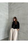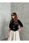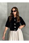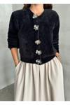 Laluvia Siyah Flora Çiçek Düğmeli Yumoş Hırka-4349