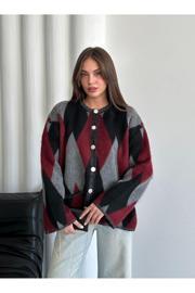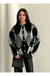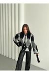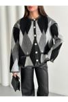 Laluvia Siyah Gümüş Düğmeli Baklava Desenli Hırka - 7200