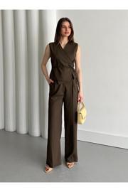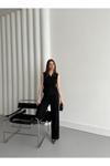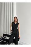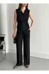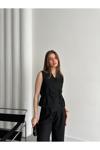 Laluvia Siyah Kruvaze Yaka Yelek Pantolon Takım - 8496