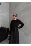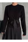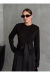 Laluvia Siyah Miusa Ön Bağlamalı Tasarım Kazak