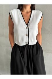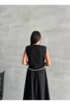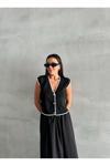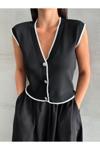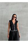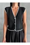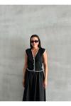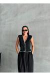Laluvia Siyah Mona Kontrast Şeritli Kolsuz Yelek