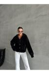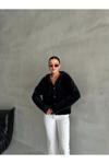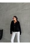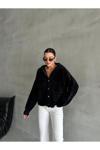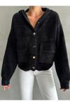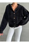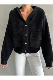 Laluvia Siyah Pulpy Kapüşonlu Cepli Düğmeli Hırka-Th241008