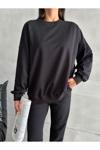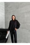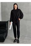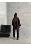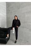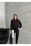 Laluvia Siyah Riven Uzun Kollu Paçası Lastikli Takım