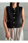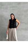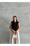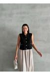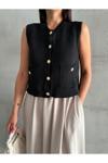 Laluvia Siyah Sophia Cepli Düğmeli Triko Süveter 4495