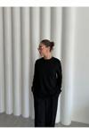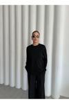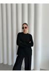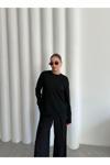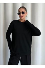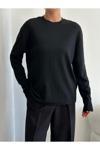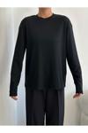 Laluvia Siyah Uzun Kollu Geniş Tshirt - 24151
