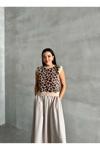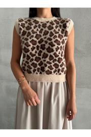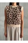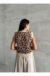 Laluvia Taş-Kahve Leopar Desenli Yumoş Süveter