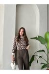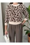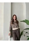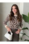 Laluvia Taş-Kahve Melody Leopar Desenli Kazak-4484
