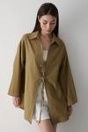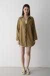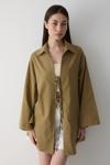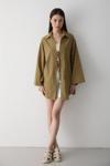 Laluvia Yağ Yeşili Bağcık Detaylı Kimono